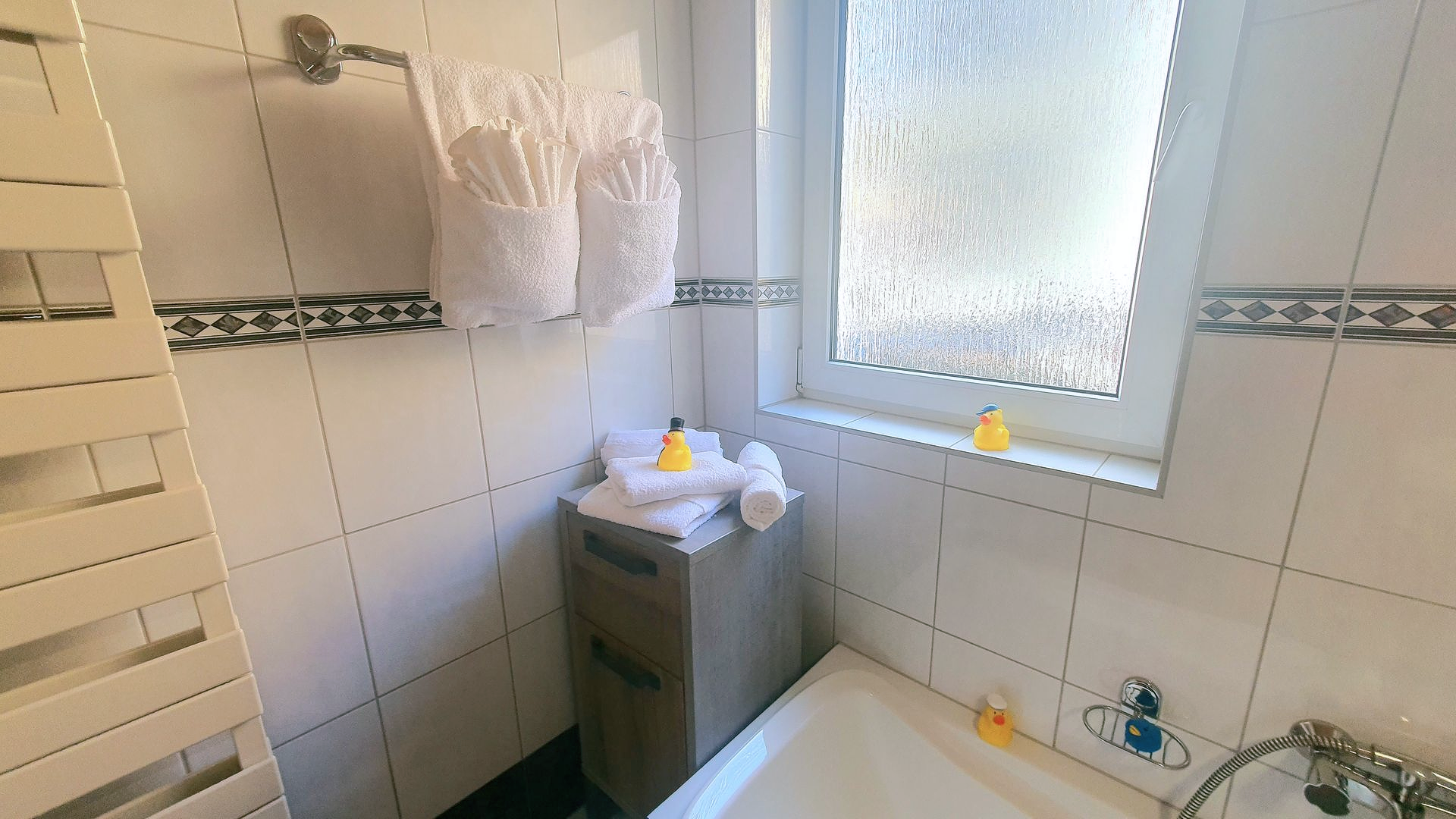 Damit Sie sich vom ersten Moment an rundum wohlfühlen, stellen wir Ihnen selbstverständlich frische Hand- und Duschtücher zur Verfügung.